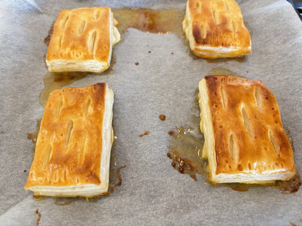 - 色付けに卵黄を「6」の上にハケで塗り、200°に予熱したオーブンで15分程度焼いたら出来上がり♪